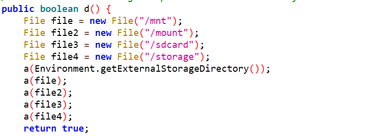 获取权限后,该勒索病毒遍历用户设备的mnt、mount、sdcard、storage目录。