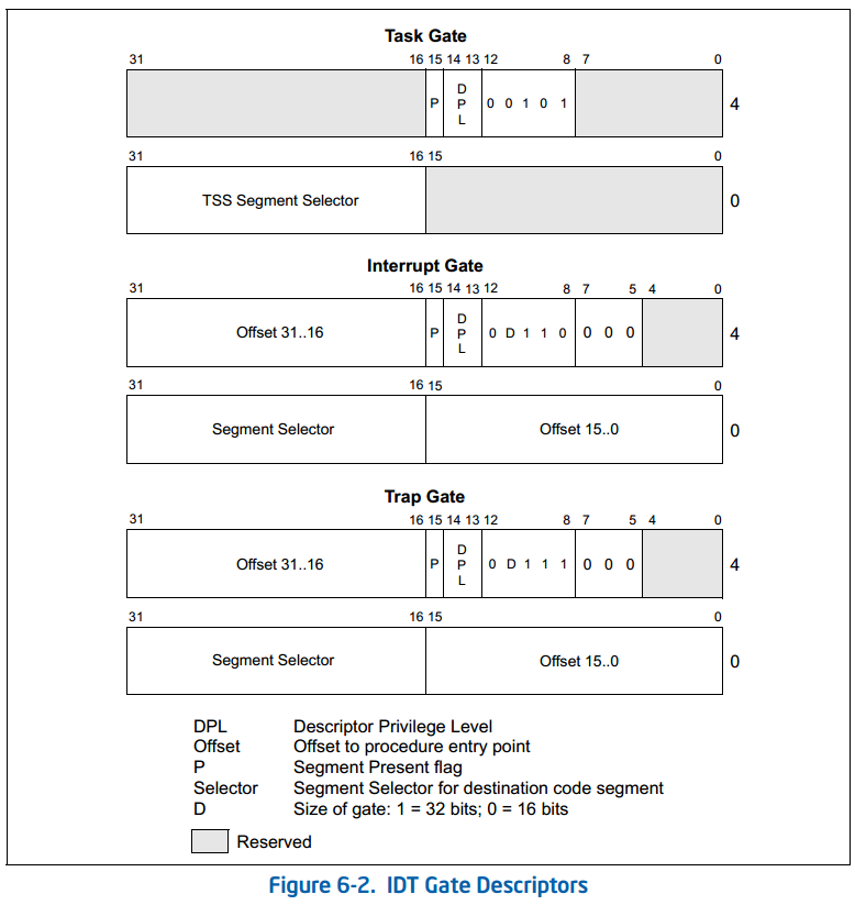 着重看下Trap Gate门描述符,简单说明下各个字段的含义,