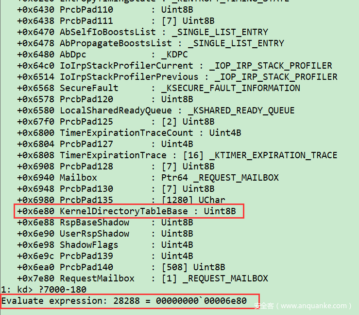 好了,这里减去180的原因是将其转换为相对于KPRCB的偏移。这与代码中的取内核的页表机制就对上了。这里需要特别说明下,Win10中同一个进程用户态页表和内核态页表是不同的,做了页表隔离。