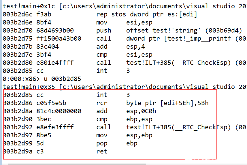 真相了,原来是VS2010的调试器“玩阴的”,故意不给你显示,其实所有调试器内部都会维护一个断点列表之类的数据结构,当你查询某些指令空间时,他会遍历这个结构,还原出原来的真是指令数据给你看。为什么他要这么做?因为intel的CPU时CISC架构的,如果某一个字节错了,可能导致后边整个解码到反汇编都错了,这样的话你还不砸锅了。比如下边的图所示: