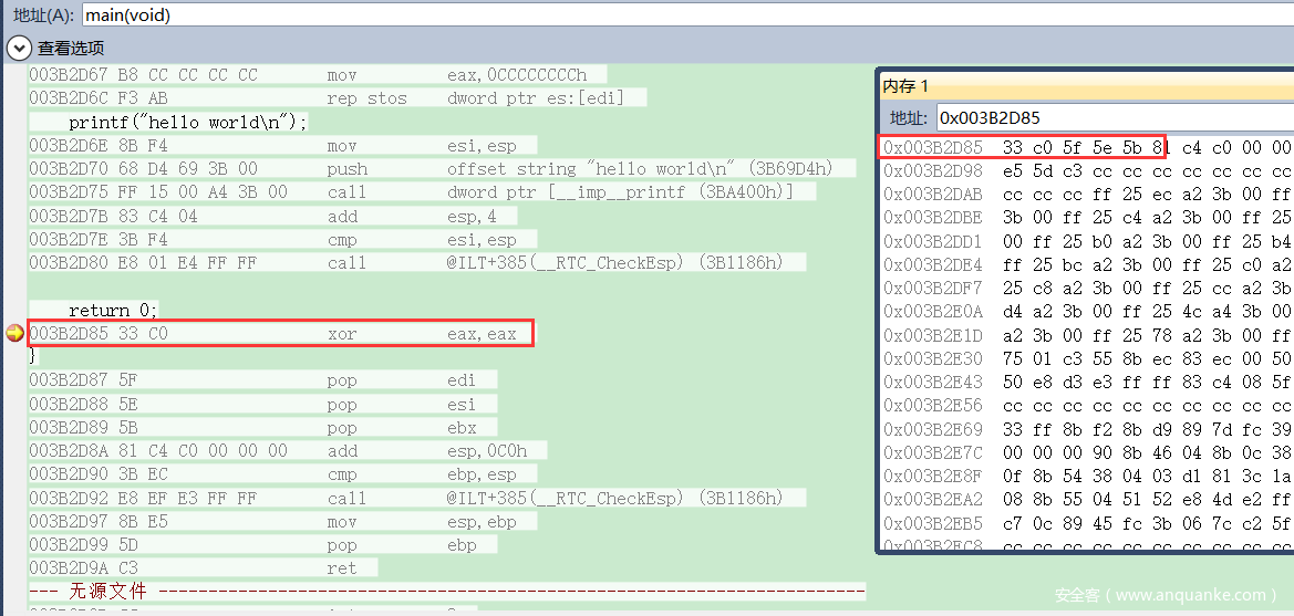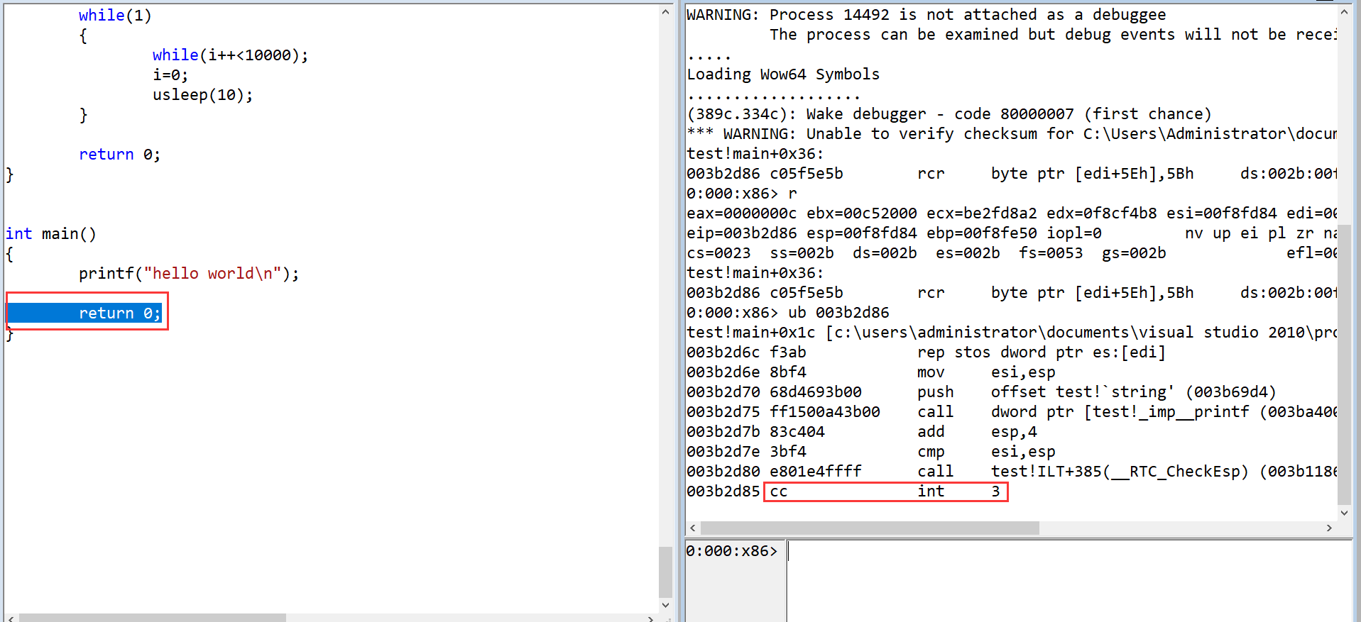好了,下边调试一个实际的程序看下,调试器又是如何配合的。