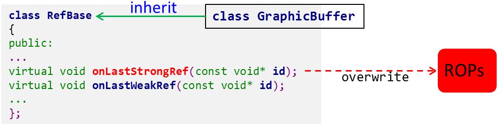 - 泄露某些模块基地址,覆盖GraphicBuffer对象的虚函数指针