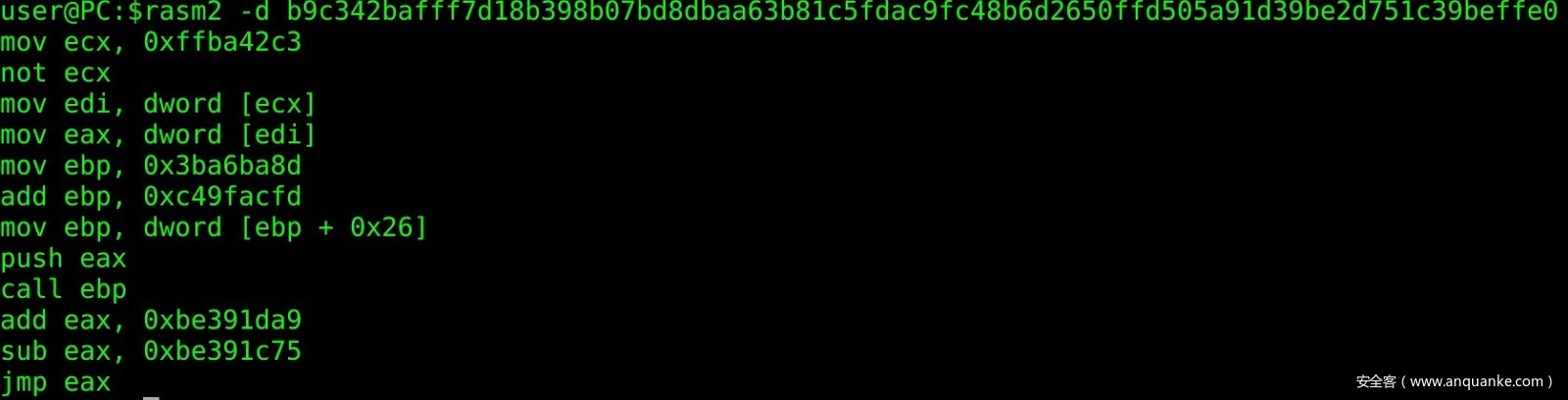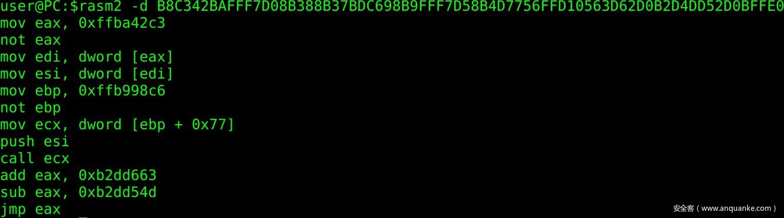 解码后的数据与我们之前看到的非常类似,之前我们碰到的shellcode如图12所示: