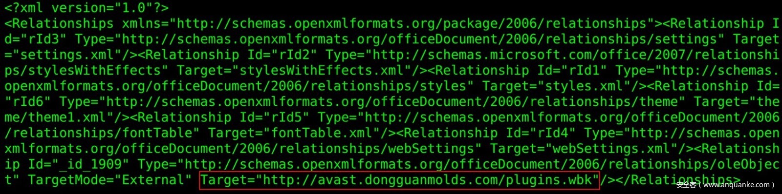 我们对FormBook的分析文章中包含该阶段的更多细节。许多用户潜意识中都会认为现在Microsoft Word文档的危险性要比RTF或者DOC文档小。虽然这个观点有一定道理,但攻击者仍然可以找到新的方法,通过新的这些文档格式来利用各种漏洞。