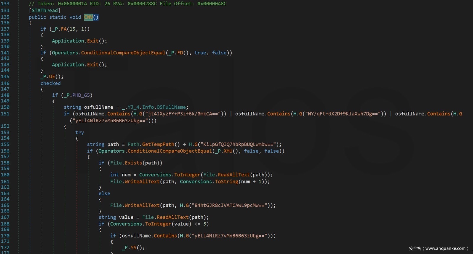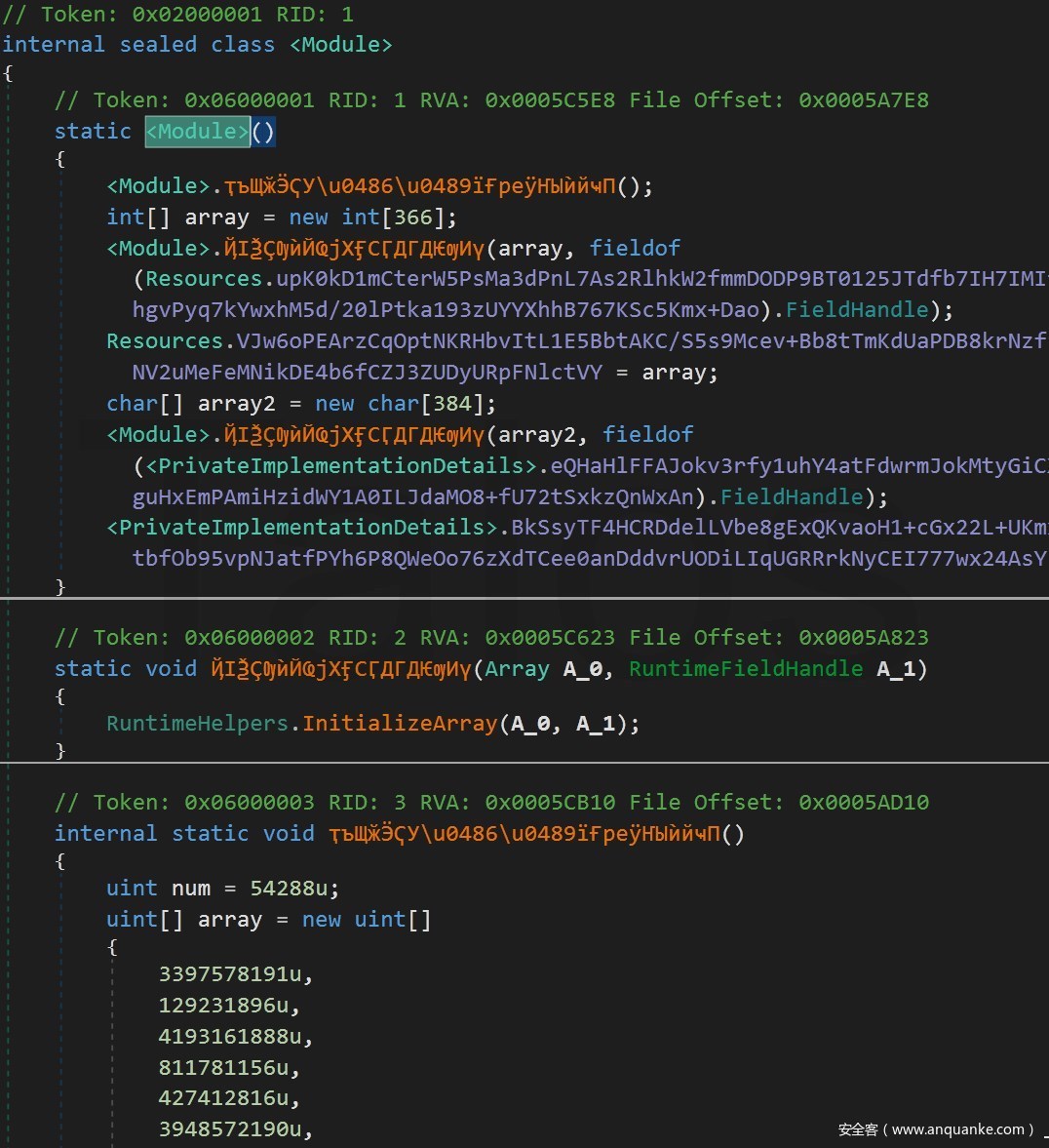 类构造函数(cctor)首先会执行如下方法,将一个大型数组加载到内存中并加以解码。