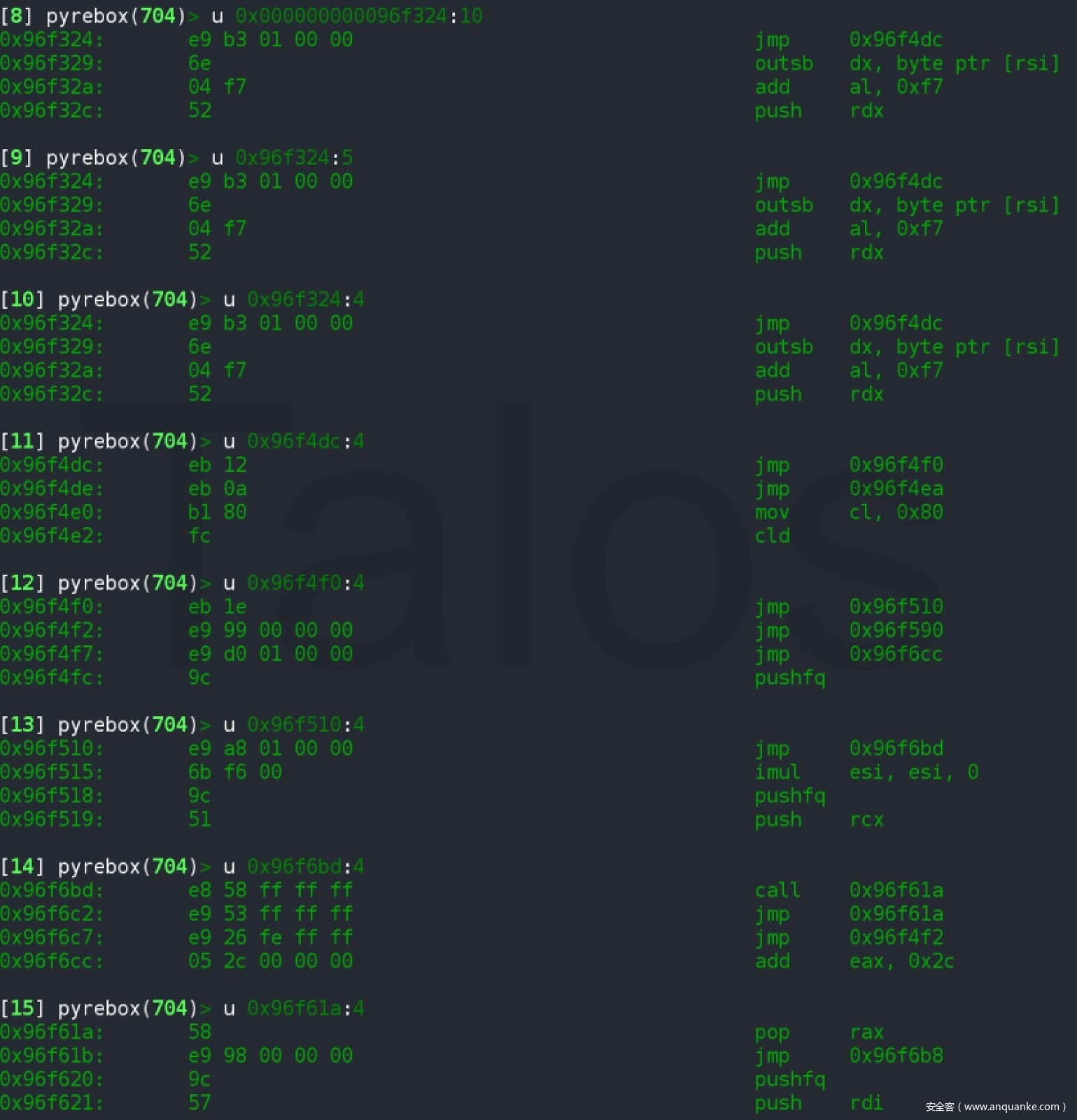图13. 检测跳转到无效地址0x44fd22时PyREBox停止执行