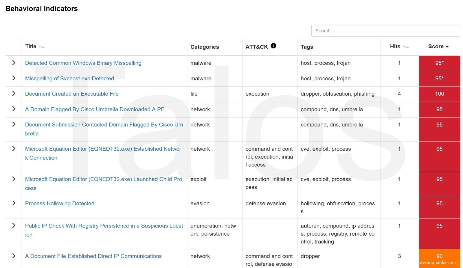 思科Talos团队最近发现了一款新的恶意软件,该软件会释放名为“Agent Tesla”的信息窃取木马以及另一款恶意软件Loki(这也是款信息窃取木马)。最开始时Talos的感知系统检测到了一个高度可疑的文档,常见的反病毒解决方案并不会去采集该文档。然而,思科的恶意软件分析及威胁情报一体平台Threat Grid成功将这个未知文件识别为恶意软件。该恶意软件的幕后黑手使用了著名的漏洞利用链,但针对性进行了修改,成功规避了反病毒解决方案。在本文中,我们将介绍攻击者做了哪些修改以规避检测软件,也会分析使用复杂软件跟踪这类攻击的重要性。如果攻击行为不被发现,Agent Tesla就可以从许多重要软件(如Google Chrome、Mozilla Firefox、Microsoft Outlook以及其他软件)中窃取用户的登录信息,也能让攻击者在被感染的系统上安装其他恶意软件。