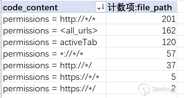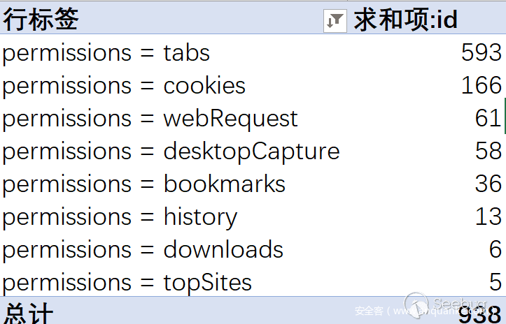 为了能够尽量真实的反映真实世界中的影响,这里我们随机选取1200个chrome插件,并从这部分的插件中获取一些结果。值得注意的是,下面提到的权限并不一定代表插件不安全,只是当插件获取这样的权限时,它就有能力完成不安 全的操作。