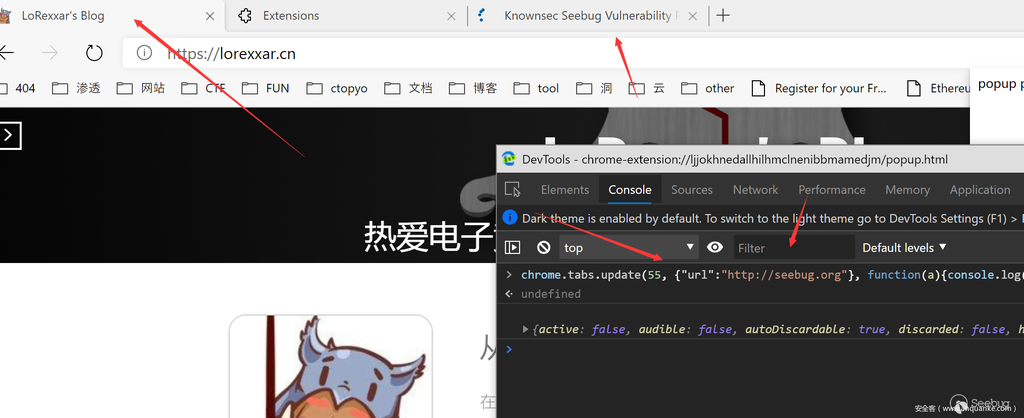 换言之,当插件申请到activeTab权限时,哪怕获取不到浏览器信息,也能任意操作浏览的标签页。