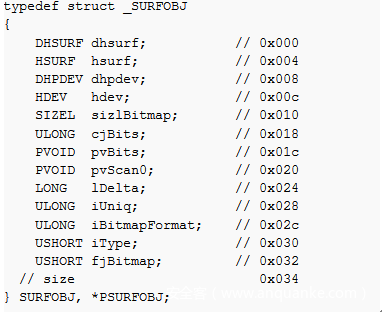 最让人容易想到的利用就是覆盖SURFOBJ的sizlBitmap成员,来使位图可读写的内存变大。
