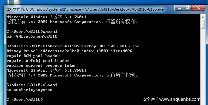 在获取System权限之前,我们首先要对因为堆溢出被破坏的POOL_HEADER结构进行修复,否则在退出当前进程时会引发系统崩溃。接着再利用漏洞读取System进程的token,并将该token替换当前进程的token,完成提权。
