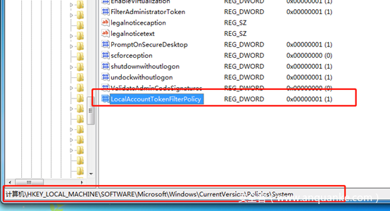 可以通过修改注册表中LocalAccountTokenFilterPolicy选项的键值来进行更改。注册表项为HKEY_LOCAL_MACHINE\SOFTWARE\Microsoft\Windows\CurrentVersion\Policies\System