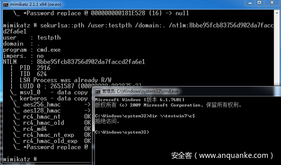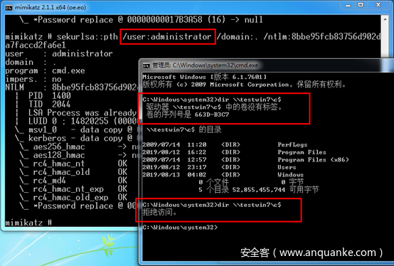 由此可见在上面的实验中域用户xxm能够成功PTH,而本地用户testpth无法成功,是因为以testpth的身份发起的请求被UAC拒绝。而administrator用户成功的原因同样是因为UAC。