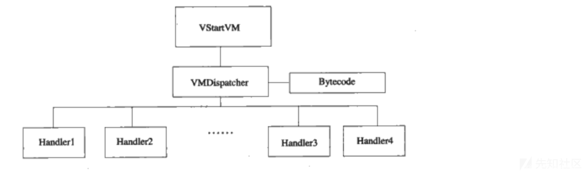 所谓虚拟机保护技术,是指将代码翻译为机器和人都无法识别的一串伪代码字节流;在具体执行时再对这些伪代码进行一一翻译解释,逐步还原为原始代码并执行。这段用于翻译伪代码并负责具体执行的子程序就叫作虚拟机VM(好似一个抽象的CPU)。它以一个函数的形式存在,函数的参数就是字节码的内存地址。