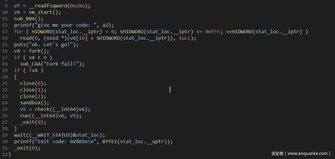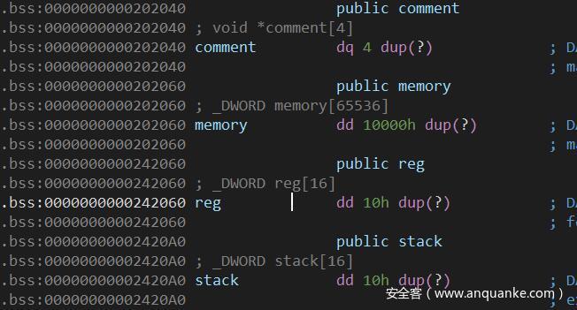 程序模拟了一个虚拟机,v5,v6,v7分别是stack段,text段和data段,set函数如下