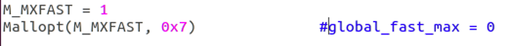 Mallopt(M_MXFAST, 0x7) #global_max_fast = 0