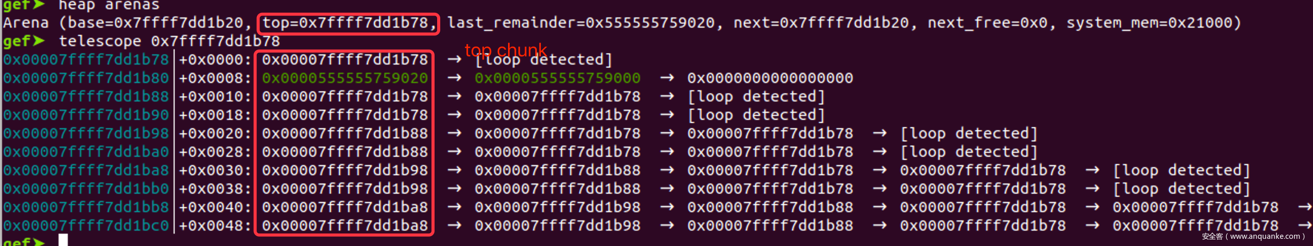 这里的关键是av->top = initial_top(av);宏展开后这一句就相当于 av->top = (&av->bins[0]) - 0x10