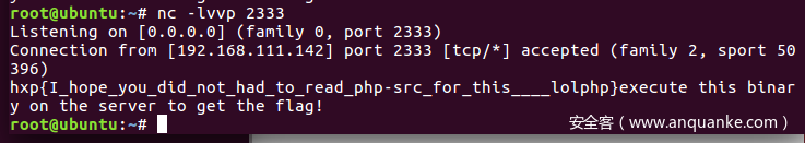 第二步在自己服务器上面搭好恶意的ftp服务并且监听2333端口: