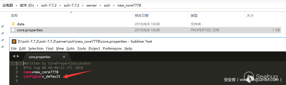 后来在回头去查阅时在Solr Guide 7.5文档中发现通过configSet参数也能创建core,configSet可以指定为_default与sample_techproducts_configs,如下表示创建成功,不过通过这种方式创建的core的没有conf目录,它的配置是相当于链接到configSet模板的,而不是使用copy模板的方式: