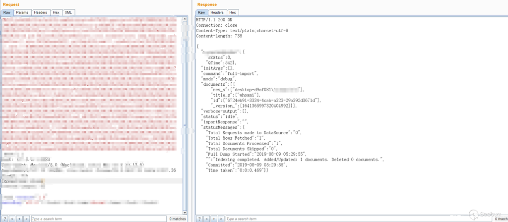 2019年08月01日,Apache Solr官方发布预警,Apache Solr DataImport功能 在开启Debug模式时,可以接收来自请求的”dataConfig”参数,这个参数的功能与data-config.xml一样,不过是在开启Debug模式时方便通过此参数进行调试,并且Debug模式的开启是通过参数传入的。在dataConfig参数中可以包含script恶意脚本导致远程代码执行。