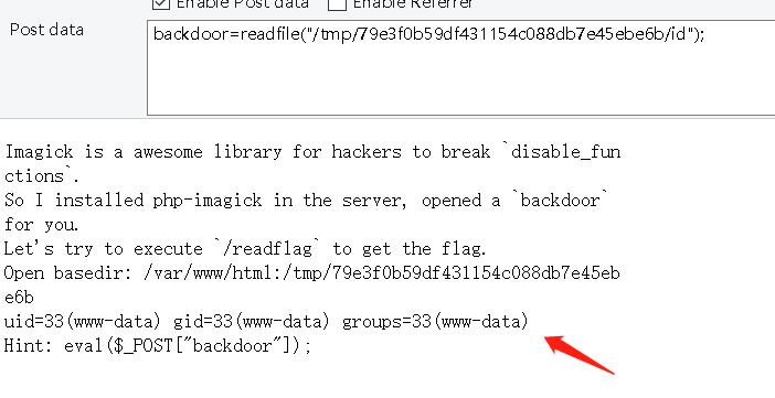 backdoor=readfile("/tmp/79e3f0b59df431154c088db7e45ebe6b/id");