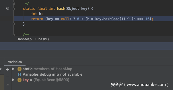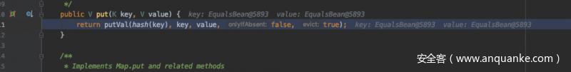 EqualsBean root = new EqualsBean(ToStringBean.class,item);//HashMap.hash调用EqualsBean.beanHashCode