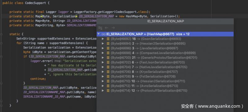 通过上面这个关系图,可以看出我们这里研究的是Dubbo协议中Hessian反序列化漏洞。关系理清楚了下面看一看漏洞复现和分析。
