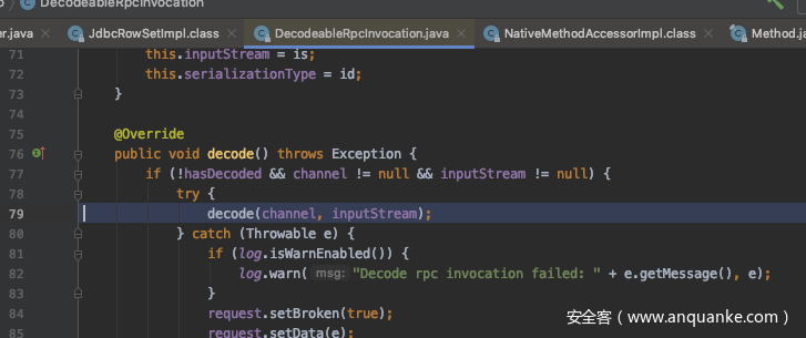 进入到Dubbo协议的decode环节,其中inputStream是去掉Dubbo协议头的原始数据