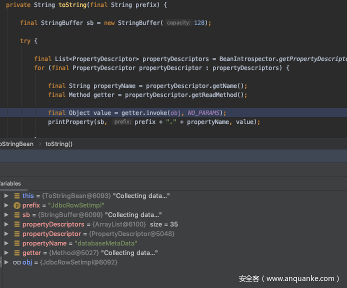 JDKUtil.makeJNDIRowSet(jndiUrl));//EqualsBean.beanHashCode调用ToStringBean.toString