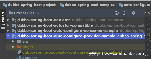 下载 2.7.5 版本,用 IDEA 打开 dubbo-spring-boot-samples 文件夹,在provider-sample文件夹下的 pom 里添加: