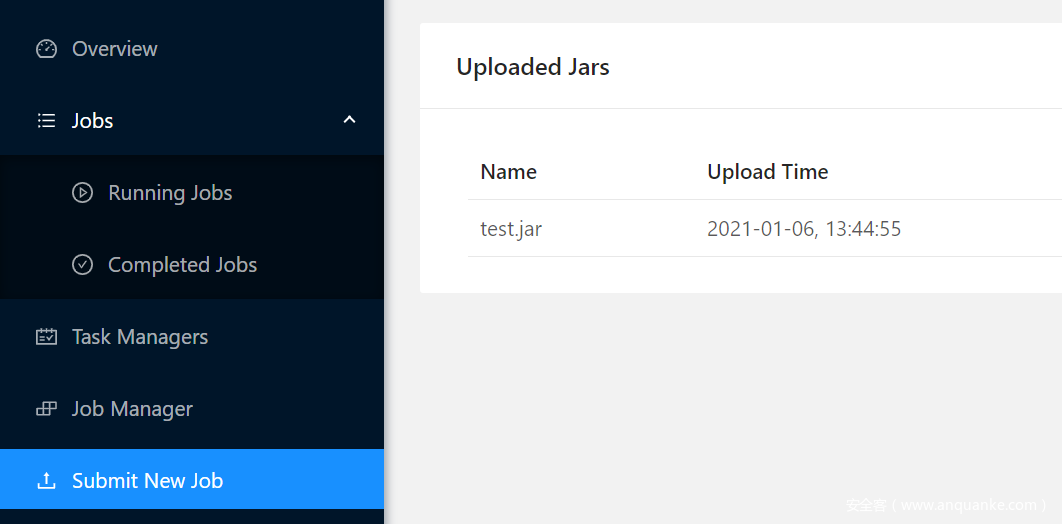 相比通过”Submit New Job”处上传jar包,通过利用CVE-2020-17518漏洞上传的jar包,并不会在前台显示,因此具有一定的隐蔽性。