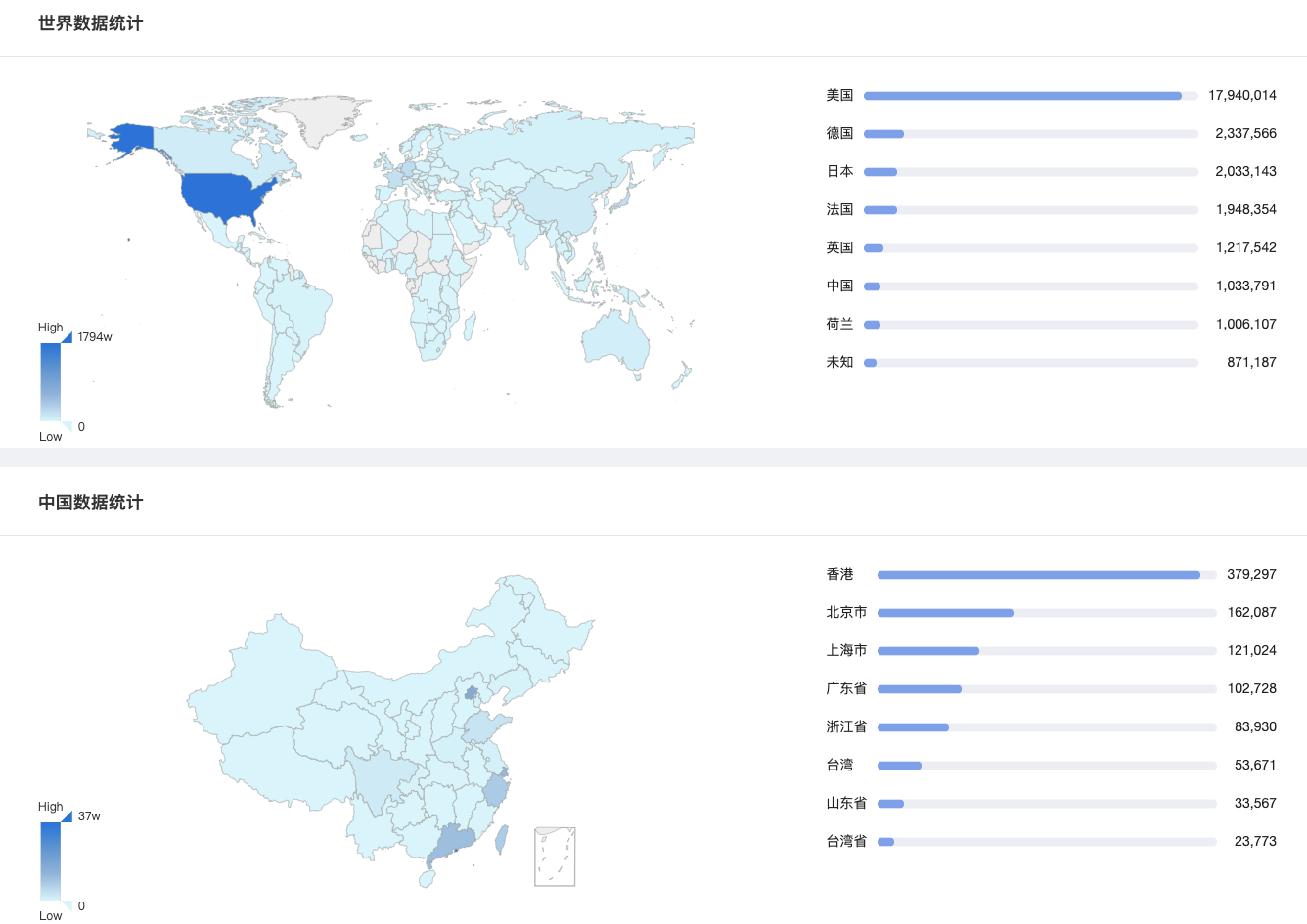 目前wordpress在全球均有分布,具体分布如下图,数据来自于360 QUAKE