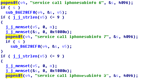 - 调用iphonesubinfo(service call iphonesubinfo num)服务,获取sim卡的信息(手机制式、DeviceId、IMEI);