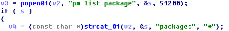 这类文件在Root权限下执行命令,获取 /data/data 目录下安装程序的信息。病毒母包会在 /system/bin和/system/xbin 下创建这类文件,文件名不限于上述列表。