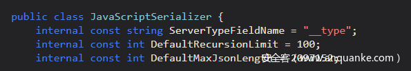 ServerTypeFieldName常量在JavaScriptSerializer类中定义的值为“__type”,