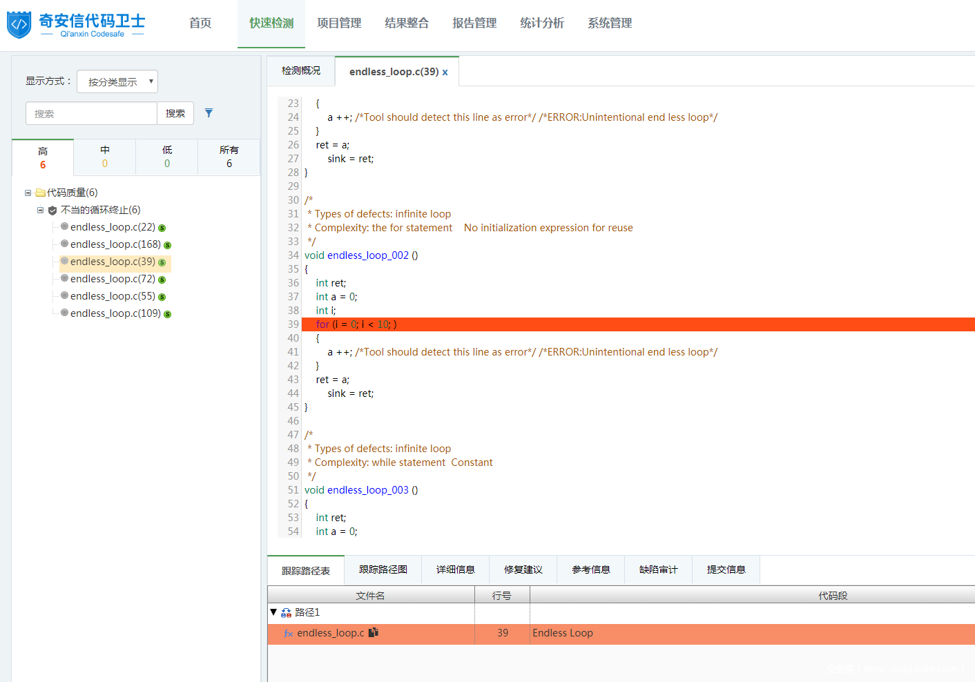 使用代码卫士对修复后的代码进行检测,可以看到已不存在“不当的循环终止”缺陷。如图2: