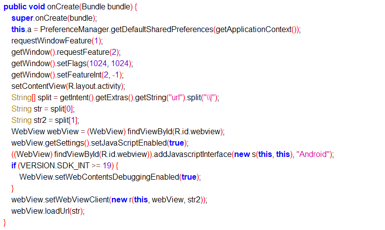 Mandrake间谍软件高度复杂:该间谍软件首次运行便将自身隐藏于后台,所有的界面都是通过动态调用启动。将所有有效字符串加密并在调用时动态在native层解密。将主要函数以及远控命令隐藏于so文件中动态加载,通过java层与native层函数交叉调用执行恶意行为避免被检测引擎检测。Mandrake使攻击者可以访问设备偏好设置,地址簿,消息,屏幕记录,设备使用情况和不活动时间等数据,该恶意软件可以完全控制设备:它可以降低电话的音量并阻止来电,屏蔽用户接收的短信息、窃取用户短信、联系人、账户、登录凭据等隐私数据。通过加载网页并注入特制的JavaScript代码进行网络钓鱼攻击。