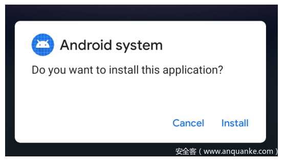 当用户点击假冒的GooglePlay通知消息后,会提示用户安装AndroidSystem应用(伪装成安卓系统应用更有助于隐藏自己),这实际上是第二阶段需要加载的有效负载。