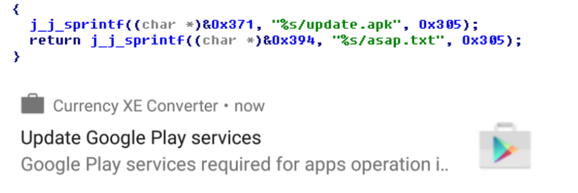 第二阶段加载程序有效负载时,应用通过使用GooglePlay图标以更新Google服务的标题诱导用户点击。