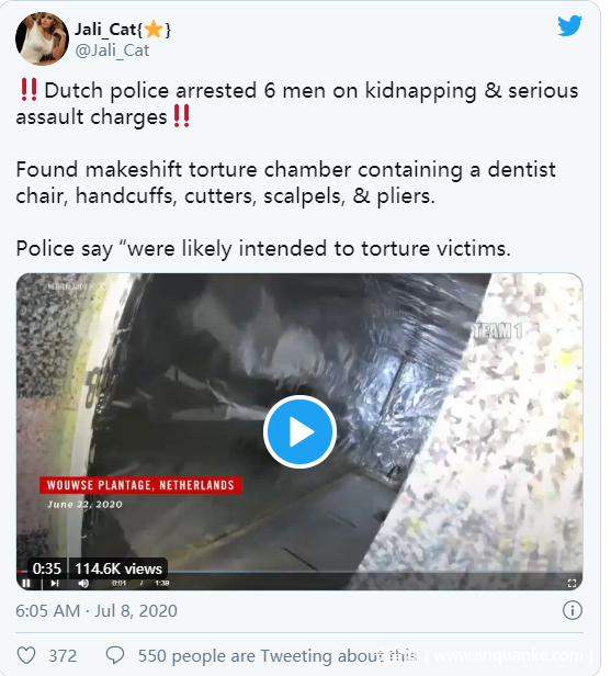 荷兰当局发布“酷刑室”图片,同时,荷兰警方在大型集装箱内发现酷刑室后逮捕了6人: