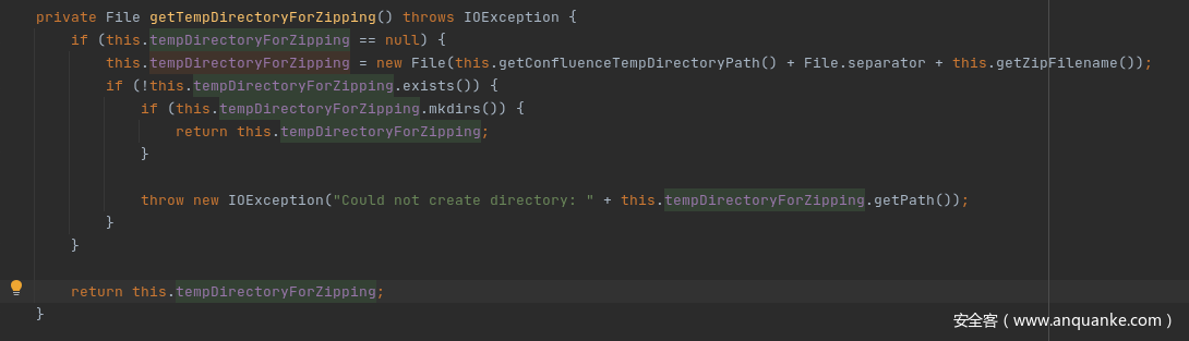 getTempDirectoryForZipping() 和getZipFilename()两个函数会根据时间和随机数生成附件文件缓存的目录,目录会存放在 confluence.home/temp/ 下, confluence.home对应如下: