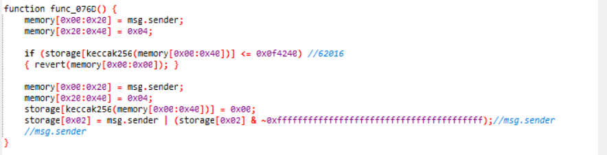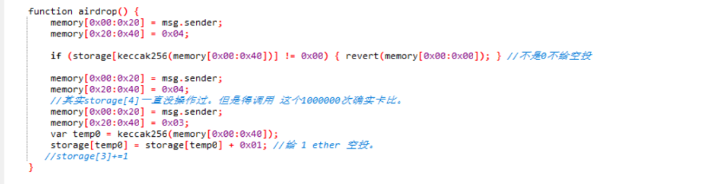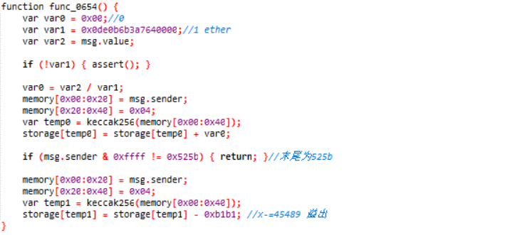 然后就可以使得storage[msg.sender[0]]+=1, storage[msg.sender[1]]+=1