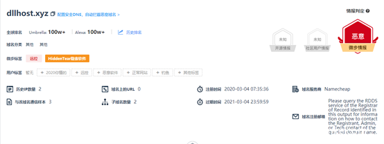 - 微步情报局发现某恶意样本会从域名 dllhost.xyz 下载后续脚本文件执行。