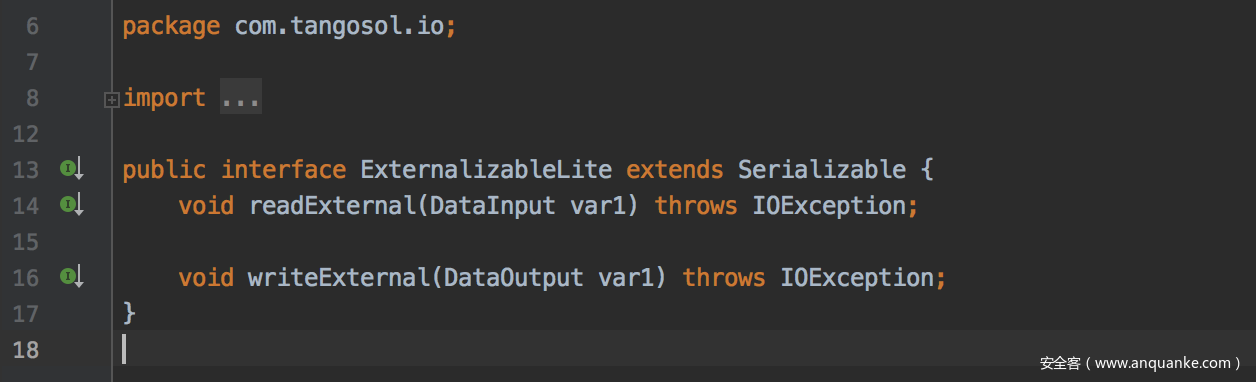 但是这里还不能直接触发,FilterExtractor类的readExternal方法为DataInput类型不是ObjectInput,这里就要利用CVE-2020-14756前部分的调用链,简单来说14756是一个二次反序列化的调用链,WebLogic自身实现了一套readObject反序列化过程,自定义的这一套需要实现ExternalizableLite接口,它的readExternal参数是DataInput类型。