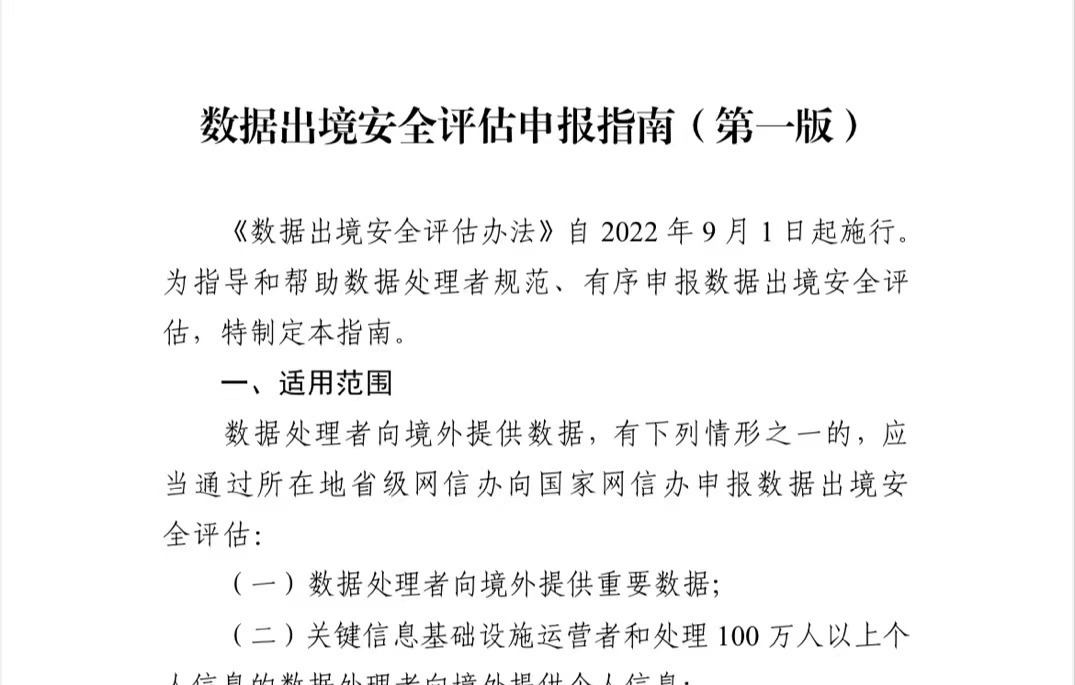 为了指导和帮助数据处理者规范、有序申报数据出境安全评估,国家互联网信息办公室编制了《数据出境安全评估申报指南(第一版)》,对数据出境安全评估申报方式、申报流程、申报材料等具体要求作出了说明。